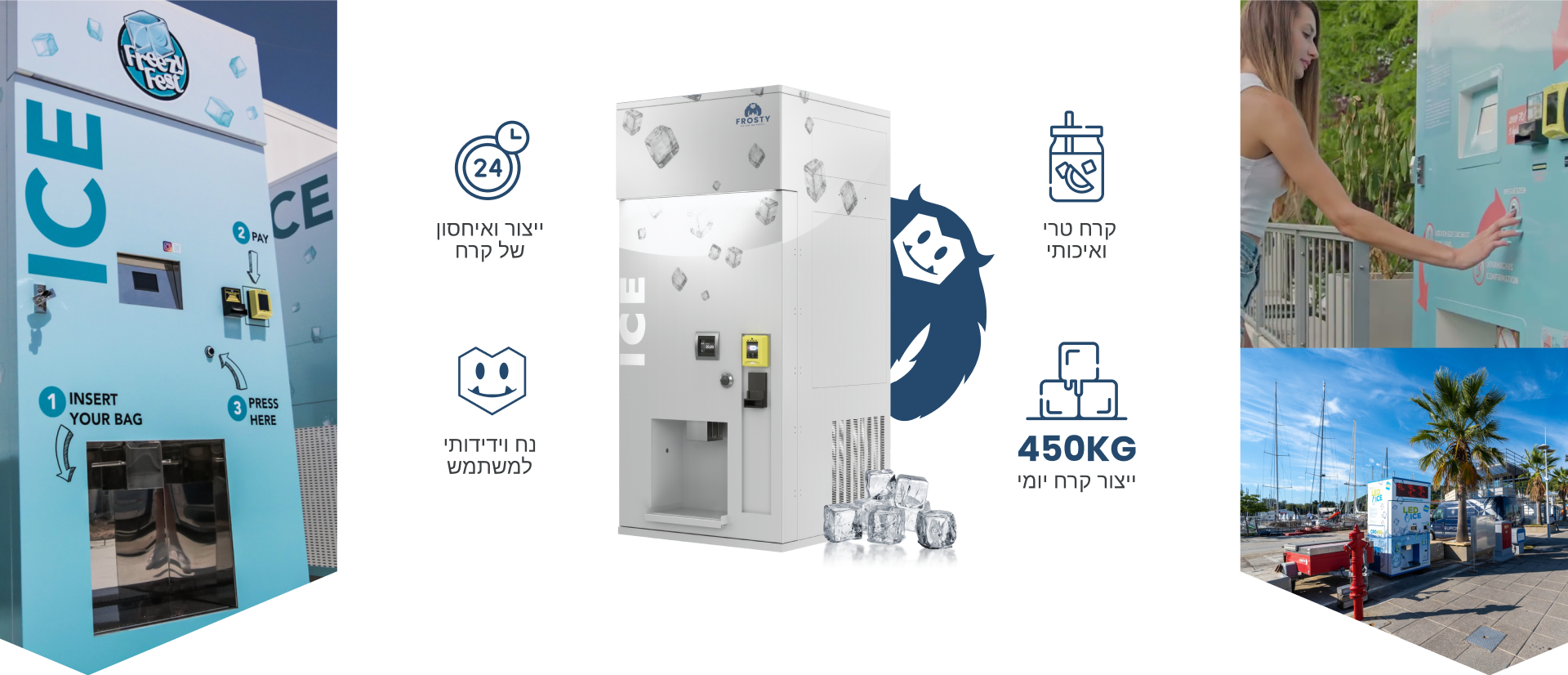 תגידו שלום לתלות בתחנות דלק ובחנויות. פרוסטי היא מכונה מהפכנית לייצור ומכירה של קרח לפי דרישה.